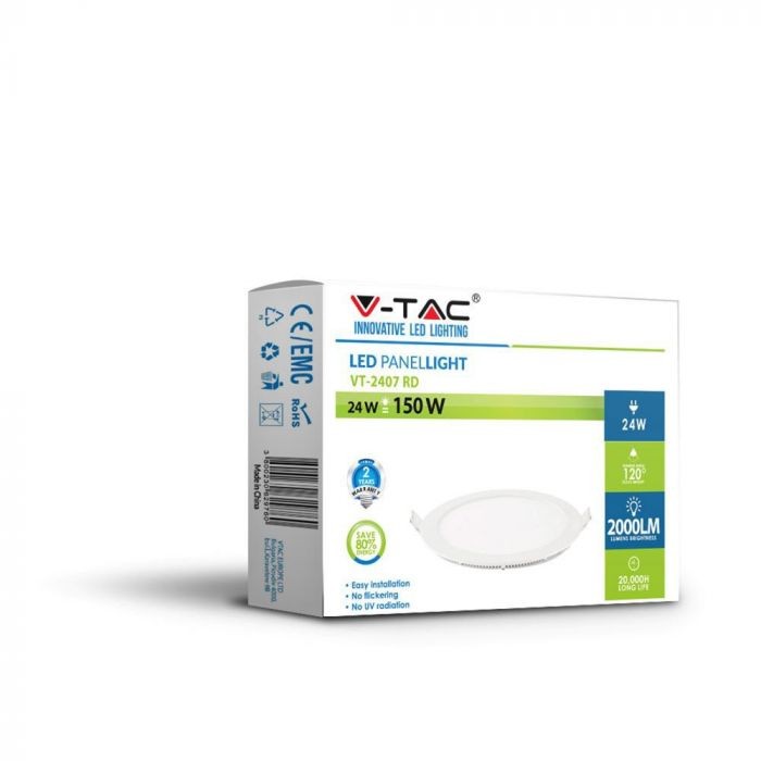 V-TAC Süllyeszthető kör alakú PRÉMIUM MINI LED panel 24W 6400K - 214874
