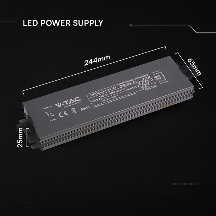 V-TAC LED Fémházas szerelhető vízálló tápegység 200W 8.25A 24V IP67 - 24247
