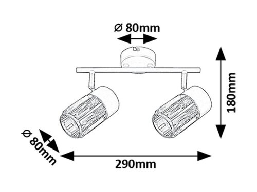 H: 290 mm x Ø: 80 mm x Távolság: 180 mm
